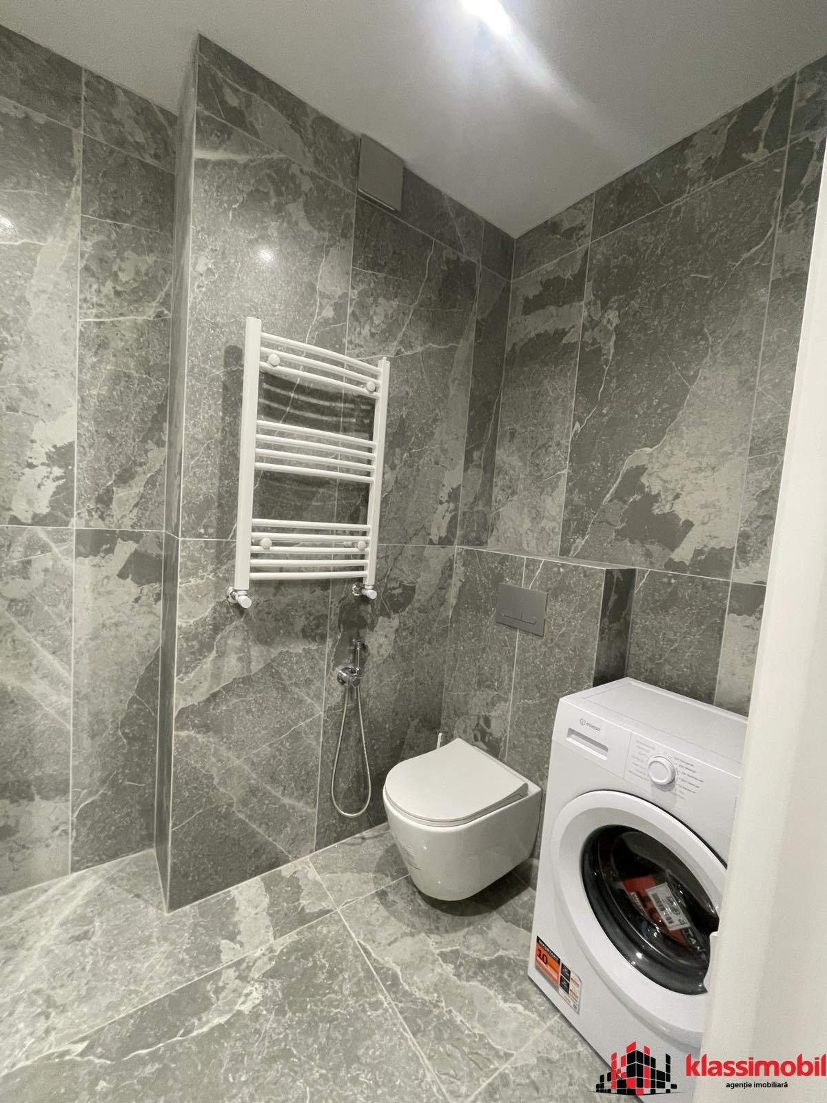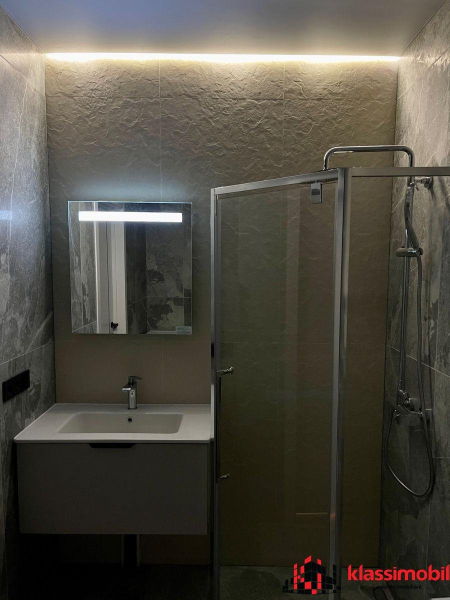 Baie modern amenajată, cu finisaje de calitate.